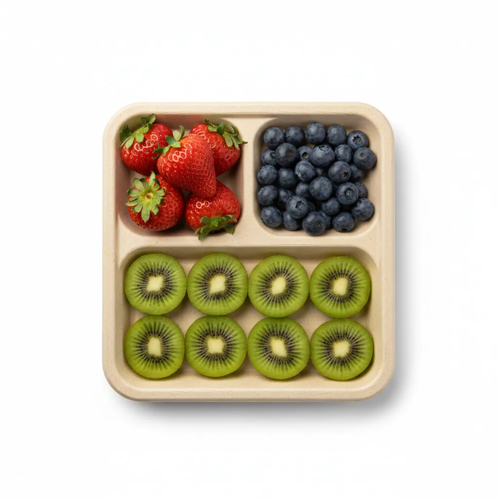 The Bagasse Rectangular Meal Tray with 4 Compartments is an environmentally friendly and practical way to serve all kinds of meals. This tray is made of sugarcane fiber, which makes it 100% compostable, hence it is the best pick for dining green. This four-compartment tray will keep portioned servings separate and well presented. For use at events, takeaways, and cafeterias, the tray represents durability along with environmental responsibility, thus being much greener than plastic and Styrofoam products.